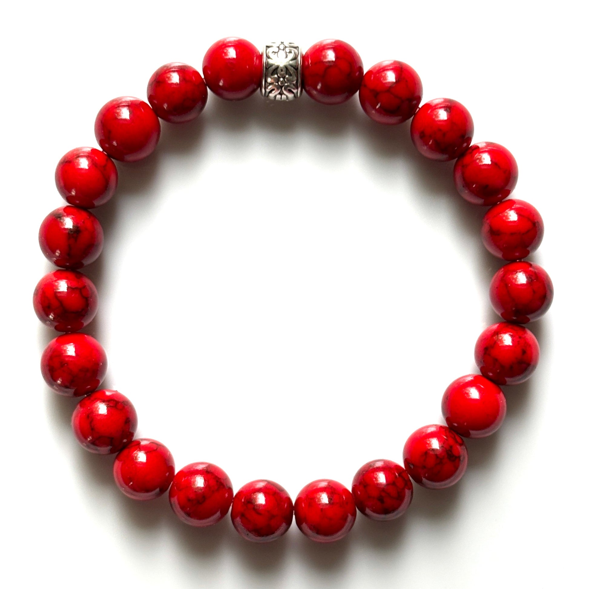 Materials: synthetic turquoise beads, stainless steel tube, slip-on